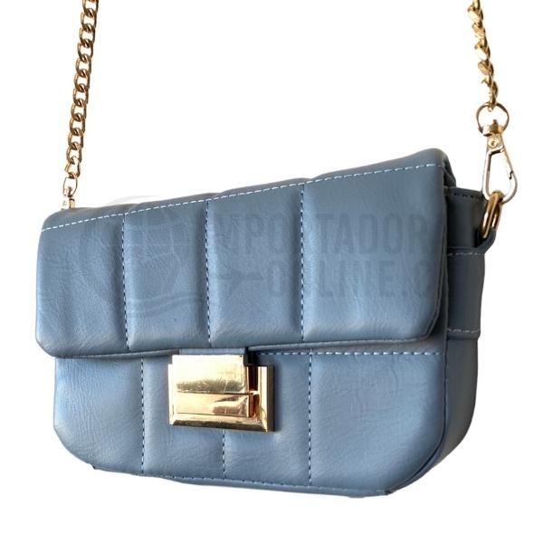 Cartera Bandolera Acolchada Celeste Cadena Dorada, Genérico