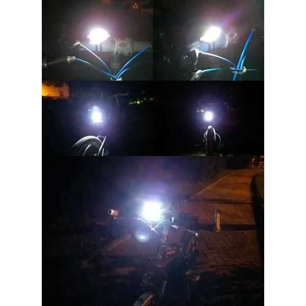 Esta luz delantera con led blanca cob para bicicletas cuenta con un diseño simple y liviano, resistente al agua y que incluye luces rojas auxiliares en caso de emergencia.
