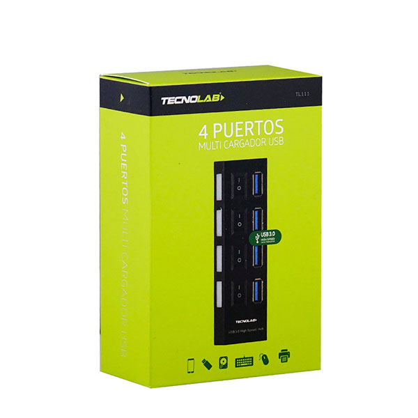 Hub Multi Cargador Usb 3.0 4 Puertos, TECNOLAB